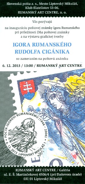 Známka nominální hodnoty 0,65 EUR vychází s podtitulem "Pocta Igorovi Rumanskému (1946-2006)". Kromě vlastní inaugurace bude možno shlédnout výstavu grafické tvorby pánů Igora Rumanského & Rudolfa Cigánika se zaměřením na poštovní známku.