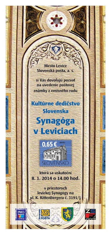 Ve středu - 8. ledna 2014 - se v prostorách synagogy v Levicích (adresa: ulice K. Kittenbergera 3191/1) od 14.00 hodin uskuteční slavnostní inaugurace první slovenské poštovní známky nového roku.